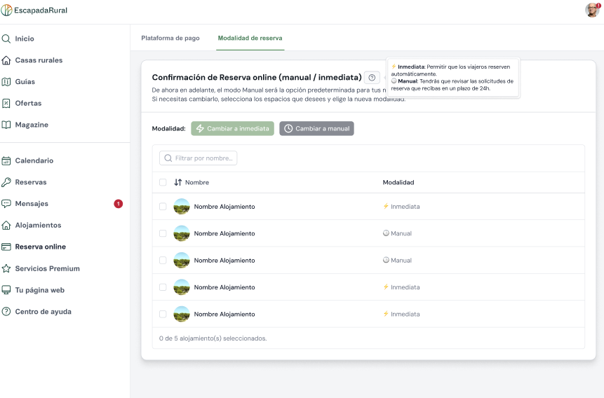 Novedad: ¡Ahora ya puedes gestionar las reservas online de forma más rápida y ágil con la reserva inmediata!
