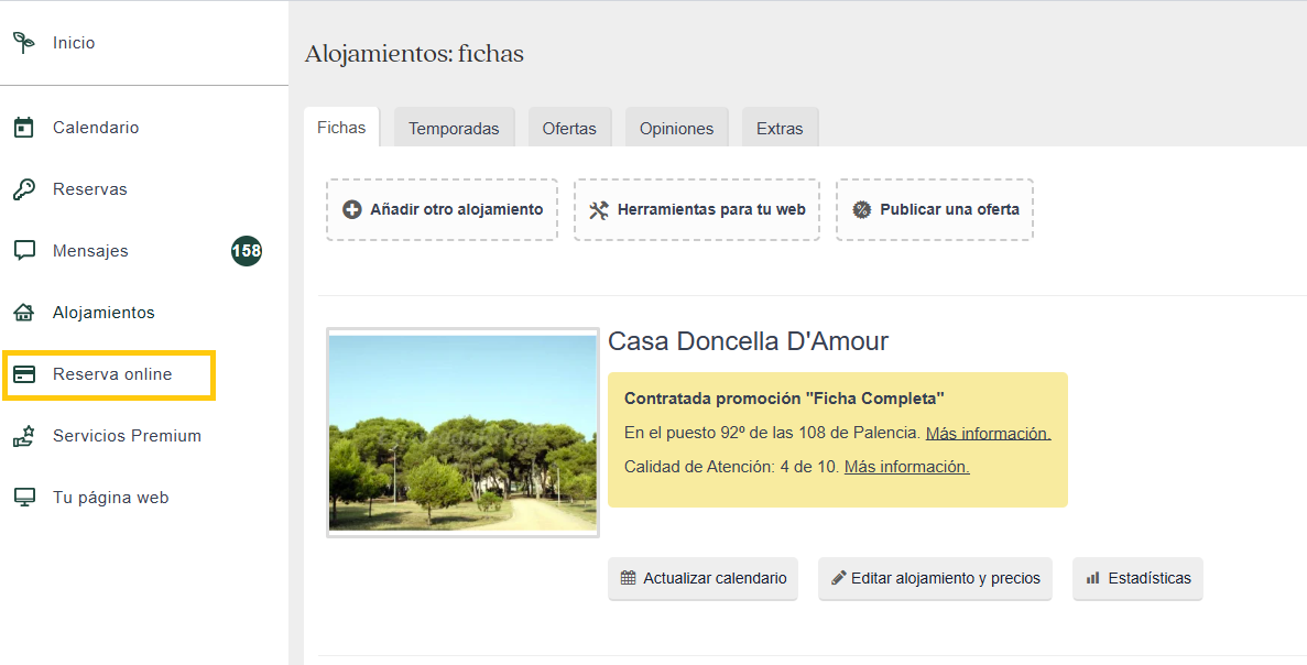 Reserva online dentro de tu menú de propietario.